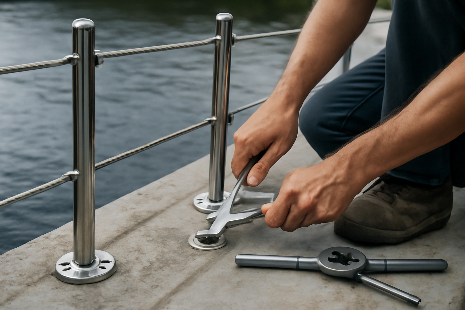 La compatibilité des matériaux est un point clé. Pour éviter la corrosion galvanique et garantir la solidité, il est préférable de rester sur des assemblages homogènes. Les chandeliers et bases sont généralement en inox A4, ce qui implique de privilégier des visserie et contreplaques de même nature.