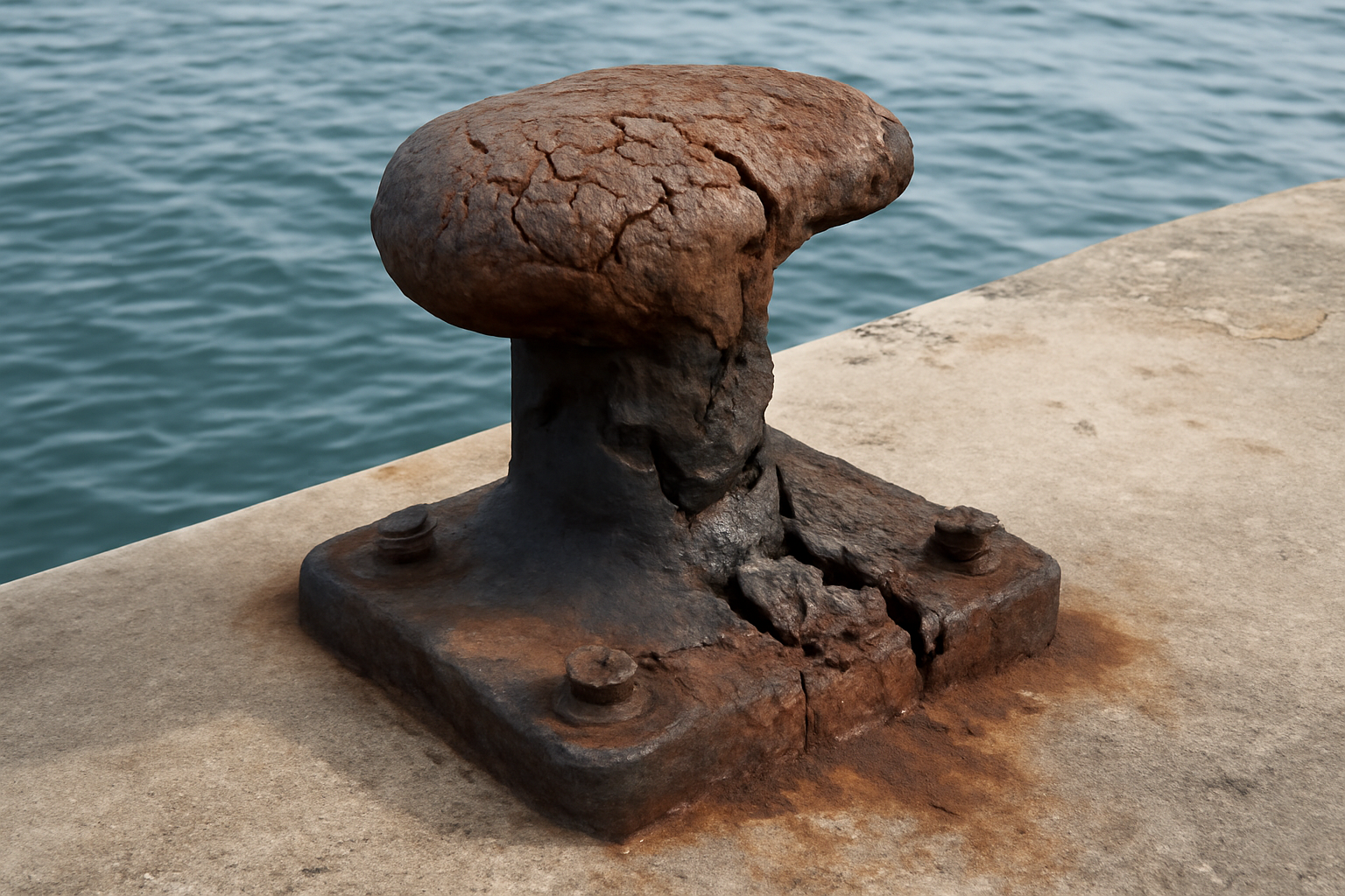 Une borne d’amarrage en bon état peut malgré tout être dangereuse si son ancrage au quai est compromis. L’interface borne support doit faire l’objet d’un contrôle attentif, surtout après des épisodes de forte houle ou le passage de navires lourds.